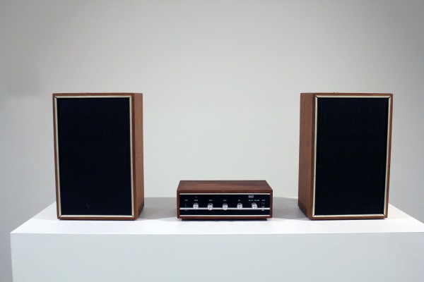 The DMG will be exhibiting four major works by Monahan, including the DMG’s first-ever outdoor installation. In A Piano Listening to Itself (2011), piano wire stretches from the rooftop of a building to a piano situated on the ground. The wires are moved by the wind and amplified by the piano’s soundboard. Subtle changes in the wind impact the harmonic content of the sound, blurring the line between naturally and electronically produced music. Music From Nowhere (1989) fills the gallery space with speaker cabinets in which the loudspeakers have been replaced with mechanical sound-producing sculptures. The result is a concrete composition that cleverly plays with notions of high and low fidelity, the possibilities of acoustical illusion, and the sonic history embodied in every loudspeaker cabinet. Other works to be exhibited at the DMG include Theremin Pendulum (2008), in which a flexible theremin antenna is mechanized to swing as a chaotic pendulum, causing changes in pitch in relation to its motion, and Piano Airlift (2006), an earlier Aeolian Piano piece developed with celebrated photographer Thaddeus Hollownia.
