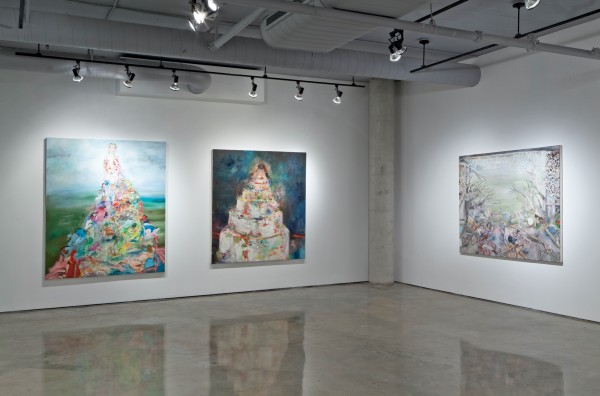 The visual world Mélanie Rocan creates with her paintings is a blended swirl of emotions and objects. Her art historical genealogy traverses many eras, from Surrealism to Expressionism, but perhaps she owes her greatest impulse to the Symbolist outgrowth of Romanticism. Enthralled by the inner material of the self, the Romantics preferred to view emotions as an implicitly valid approach to the world, and not secondary to analytic thought. Rocan’s imagery floats in the realm of the subconscious, with her dream-like, dream-dwelling subjects melding with environments both natural and cultural. The sense of nostalgia evoked by Rocan’s painted images—ferris wheels, gingham tablecloths, tire swings, floral wallpaper—speaks to memory and timelessness. These images are more about fleeting recollections than about the objects that define one’s social status.