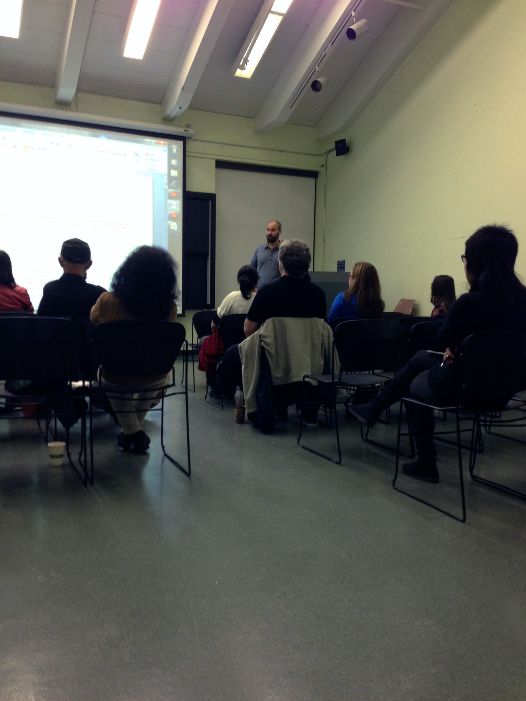 Peter Kingstone, Acting Visual/Media Arts Officer at the Toronto Arts Council provided an overview of grant programs and an exchange on the application process, walking participants through the steps involved in writing a grant, sharing perspective and tips on building a narrative, addressing audience, and submitting documentation and other support material.