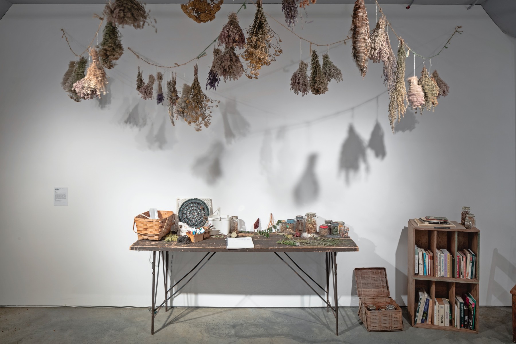 Jay White wrapped up his four-day Coyote Walk with an artist talk in the gallery. Meanwhile, behind the velvet curtain the gallery turned into a gay bar (The Fool's Paradise) where all guests were welcome to enjoy a libation and experiment with a light afternoon drag look. With words from Jamie Ross on the meaning of Samhain-Hallowe'en as highest holiday to pagans (and queers, before Pride street festivals usurped that role in the 90s), we closed the exhibition by heading outdoors for an autumnal procession and to set the Cornholio effigy ablaze.