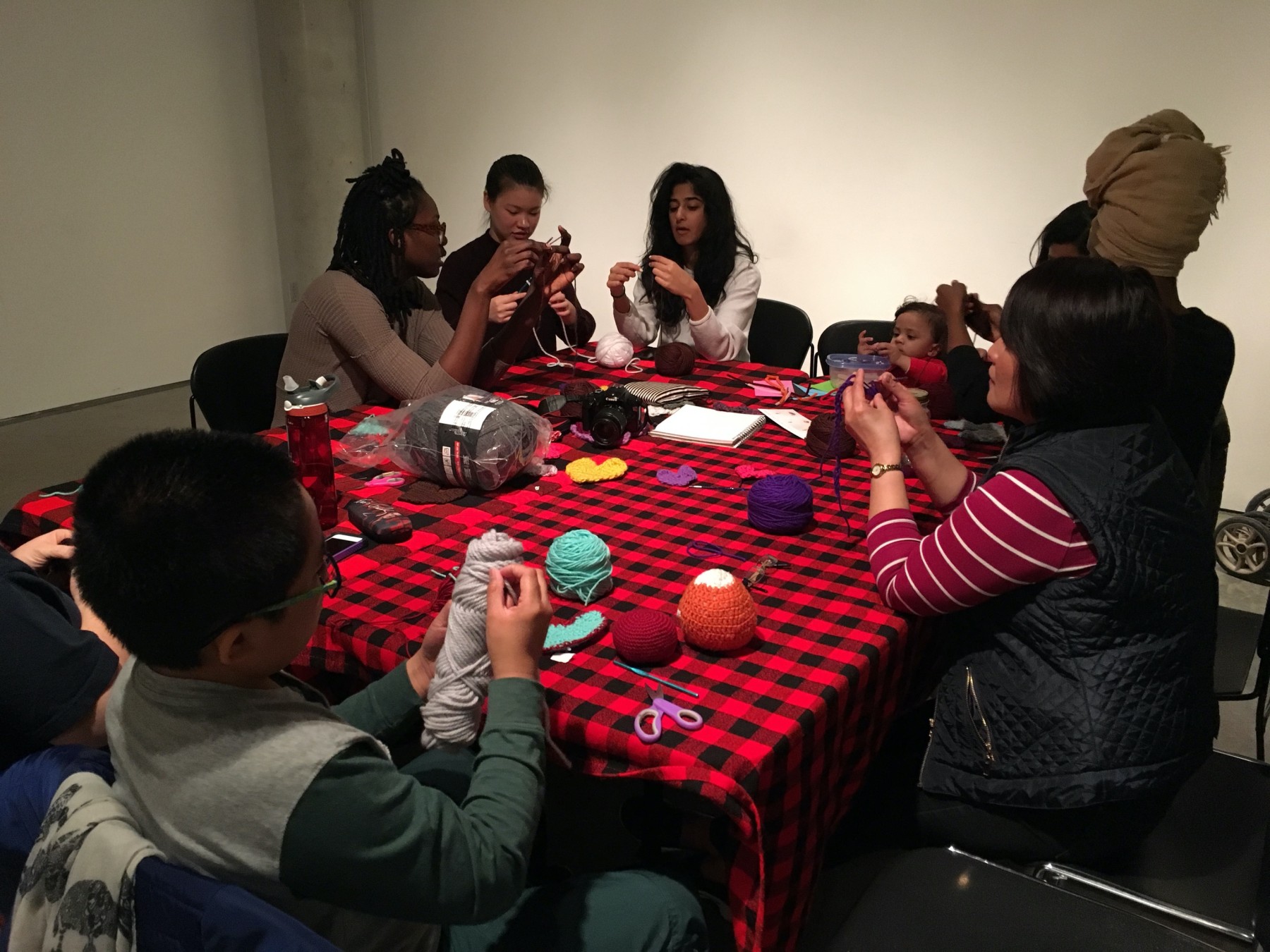 Acts of Kindness (AoK!) led a drop-in, family-friendly, all-skills-level crochet workshop/jam session on and around Heather Hart's rooftop, Northern Oracle. Participants got crafty, learned the basics of crochet, reflected and practiced mindfulness, and had fun! We created small crochet projects to leave behind in the Oracle as an offering that other gallery goers can take away and make meaning of. This workshop was free and all materials were supplied.