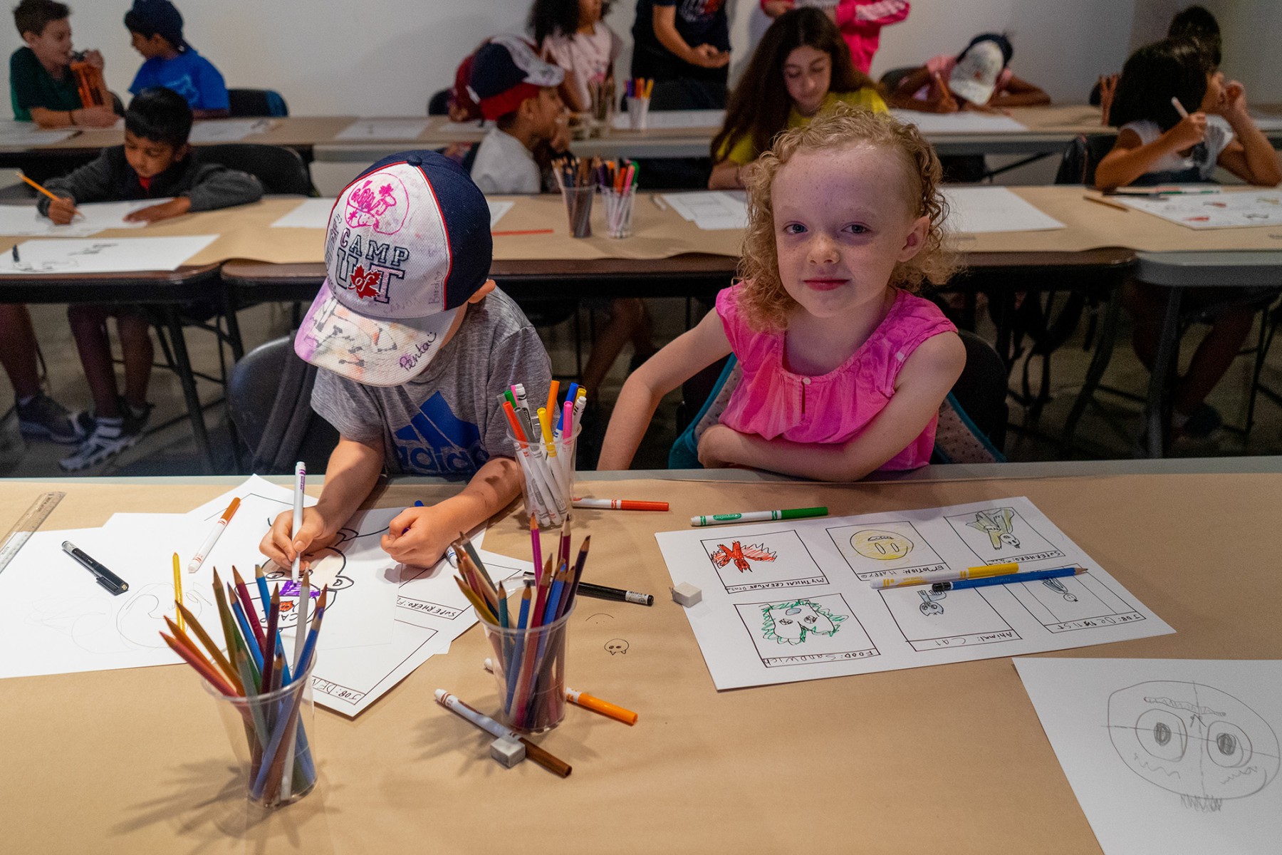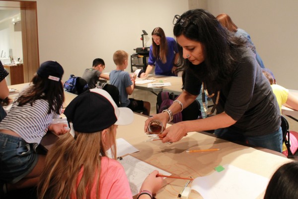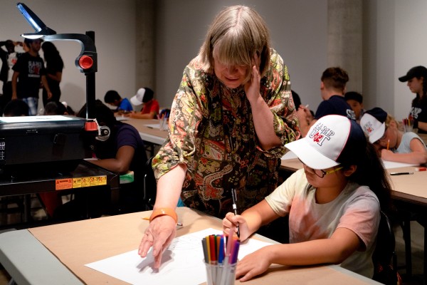 Artists Morris Lum, Kate Wilson, Tazeen Qayyum, and Heidi Cho and Morgan Sea from the Feminist Art Gallery (FAG), spent a day working with campers to teach a class in their respective mediums. Morris Lum guided youth in taking photos with polaroid cameras, Kate Wilson led a colourful drawing workshop, Tazeen Qayyum introduced her practice of miniature painting with colouring exercises and use of homemade tea washes, and Heidi Cho and Morgan Sea brought a sense of excitement with their comic and drawing tutorials.