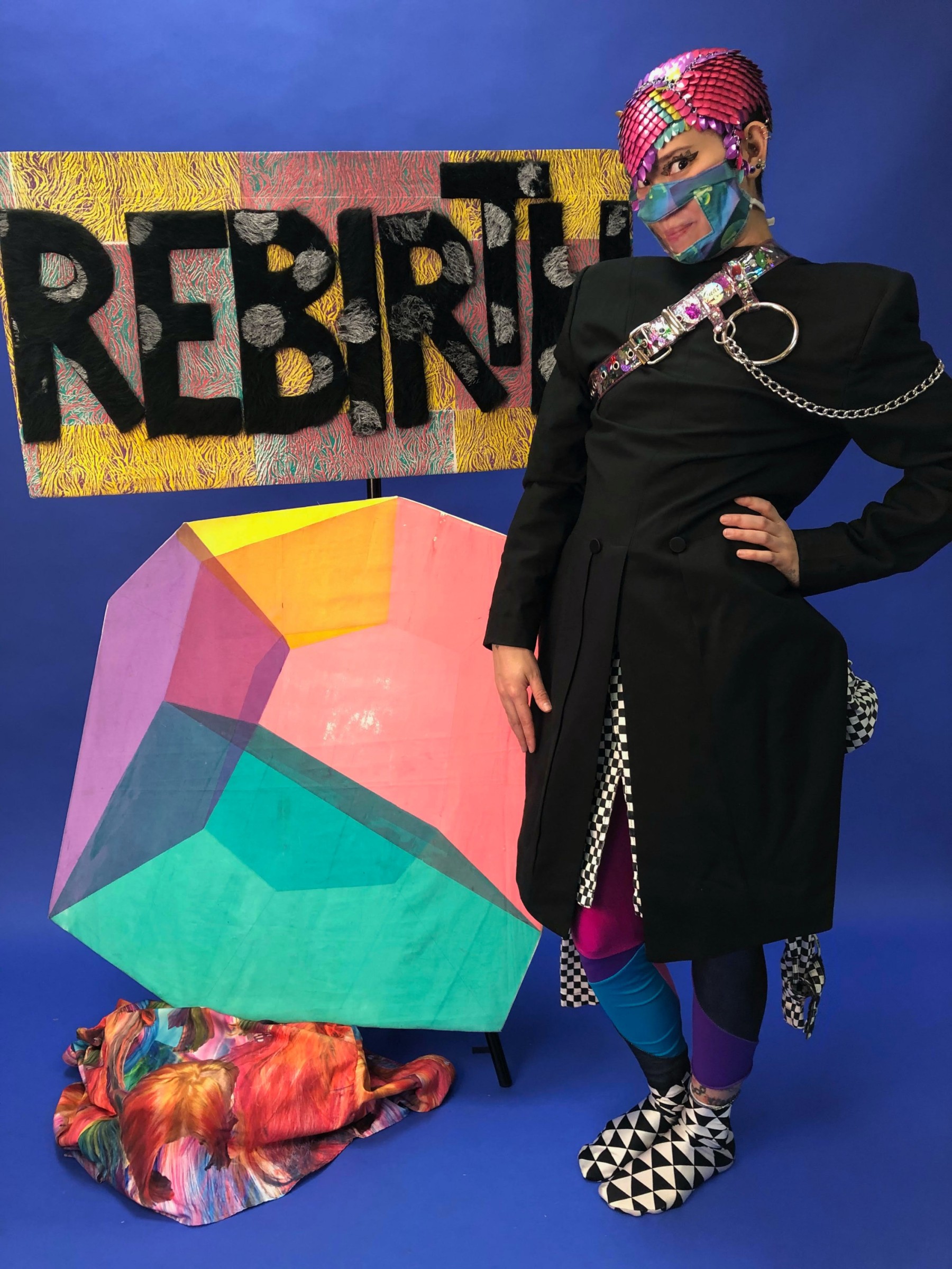 Sky Cubacub (They/Them/Xe/Xem/Xyr) is a non-binary disabled Filipinx neuroqueer from Chicago, IL. They are the creator of Rebirth Garments, a line of wearables for trans, queer and disabled people of all sizes and ages, which started in summer 2014. Sky is the editor of the Radical Visibility Zine, a full color cut and paste style zine that celebrates disabled queer life, with an emphasis on joy. Additionally they are the Access Brat and the editor of a section on ethics and inclusion called “Cancel & Gretel” at literary fashion magazine “Just Femme and Dandy”. Sky has also created a queer DIY fashion program series with Chicago Public Library Called Radical Fit. They have had over 45 fashion performances and lectured at the Whitney Museum of American Art, the Rhode Island School of Design, the University of Utah, the School of the Art Institute of Chicago, and Northwestern University. Rebirth Garments has been featured in Teen Vogue, Nylon, Playboy, Huffington Post, Buzzfeed, Vice, Wussy Mag, and the New York Times. Sky was named 2018 Chicagoan of the Year by the Chicago Tribune and is a 2019/2020 Kennedy Center Citizen Artist and a Disability Futures Fellow.