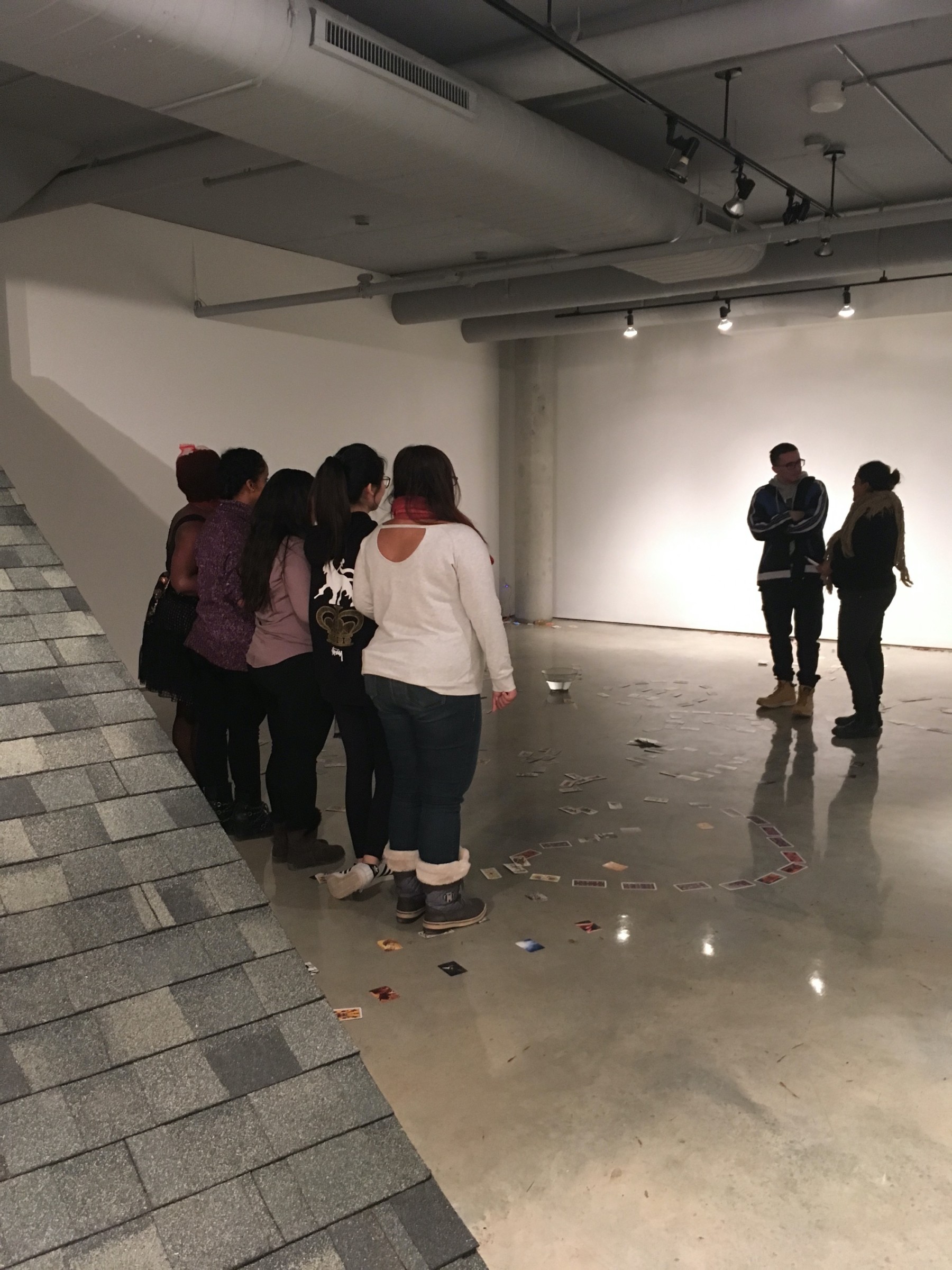In this durational work, black feminist performance artist Gabrielle Civil activated Heather Hart's Northern Oracleand showcased her own performative process. Inspired by black feminist legacies and the energy of Hart’s work, Civil becamse a "northern oracle" herself in real time. Reading, chanting, meditating, writing, and shouting from the rooftop, she welcomed gallery visitors into an evolving ritual of homecoming, nest and flight. Later that evening, she performed a short, crystallized version of this ritual followed by a discussion with acclaimed Canadian performance artist Tanya Mars.
