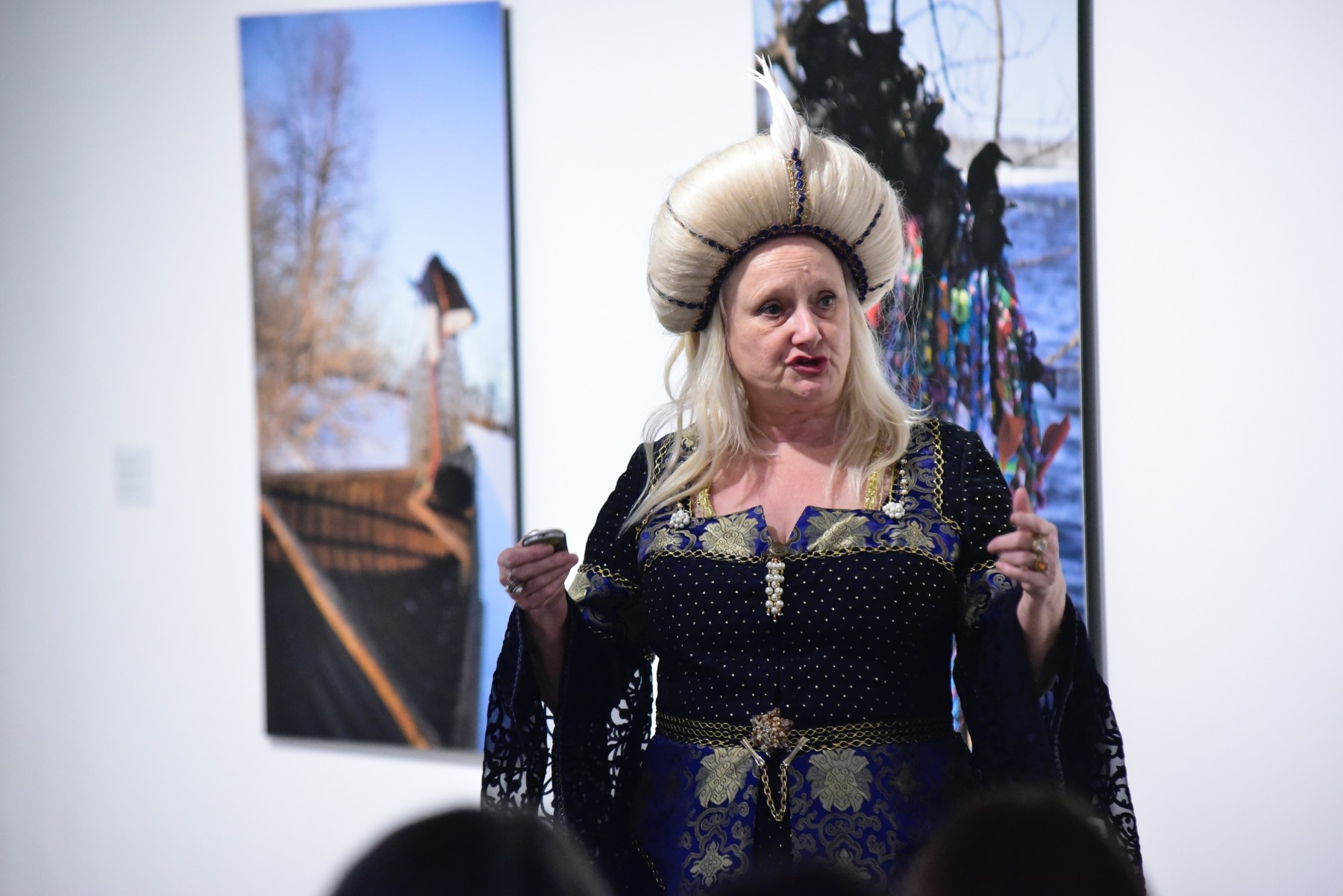 Renowned Canadian feminist performance artist, and U of T Scarborough faculty member, Tanya Mars discussed the role of persona and costume in contemporary art practice and how this artistic strategy relates to the work of Meryl McMaster.