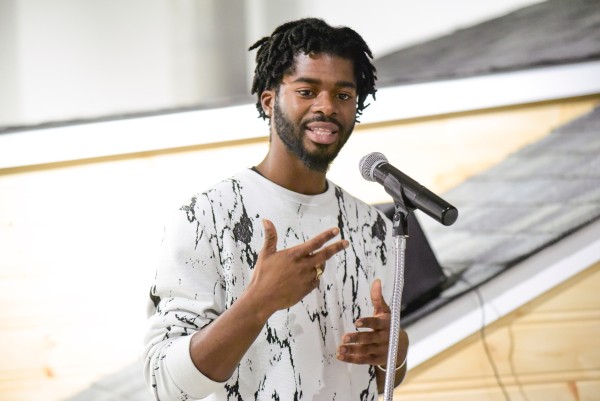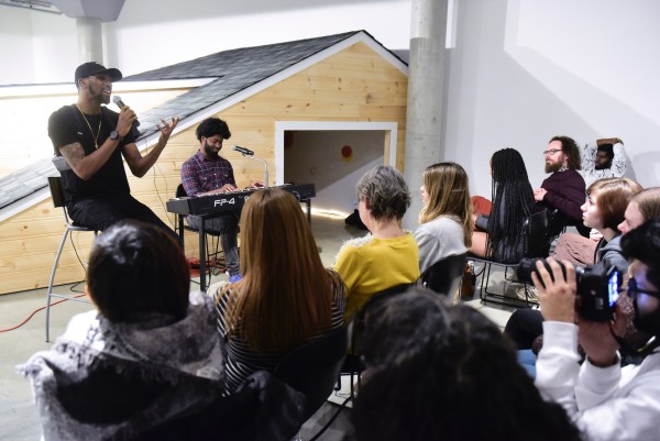 Northern Oracle was activated with a public reception and series of performances curated by RISE. Considering themes of the current DMG exhibition -- ideas of home, oral history & Afrofuturism -- members of the Scarborough-based spoken word collective shouted it from the rooftop! The evening featured performance by poets Randell Adjei and Faduma Mohamed, rapper Stretch and singer J.L.