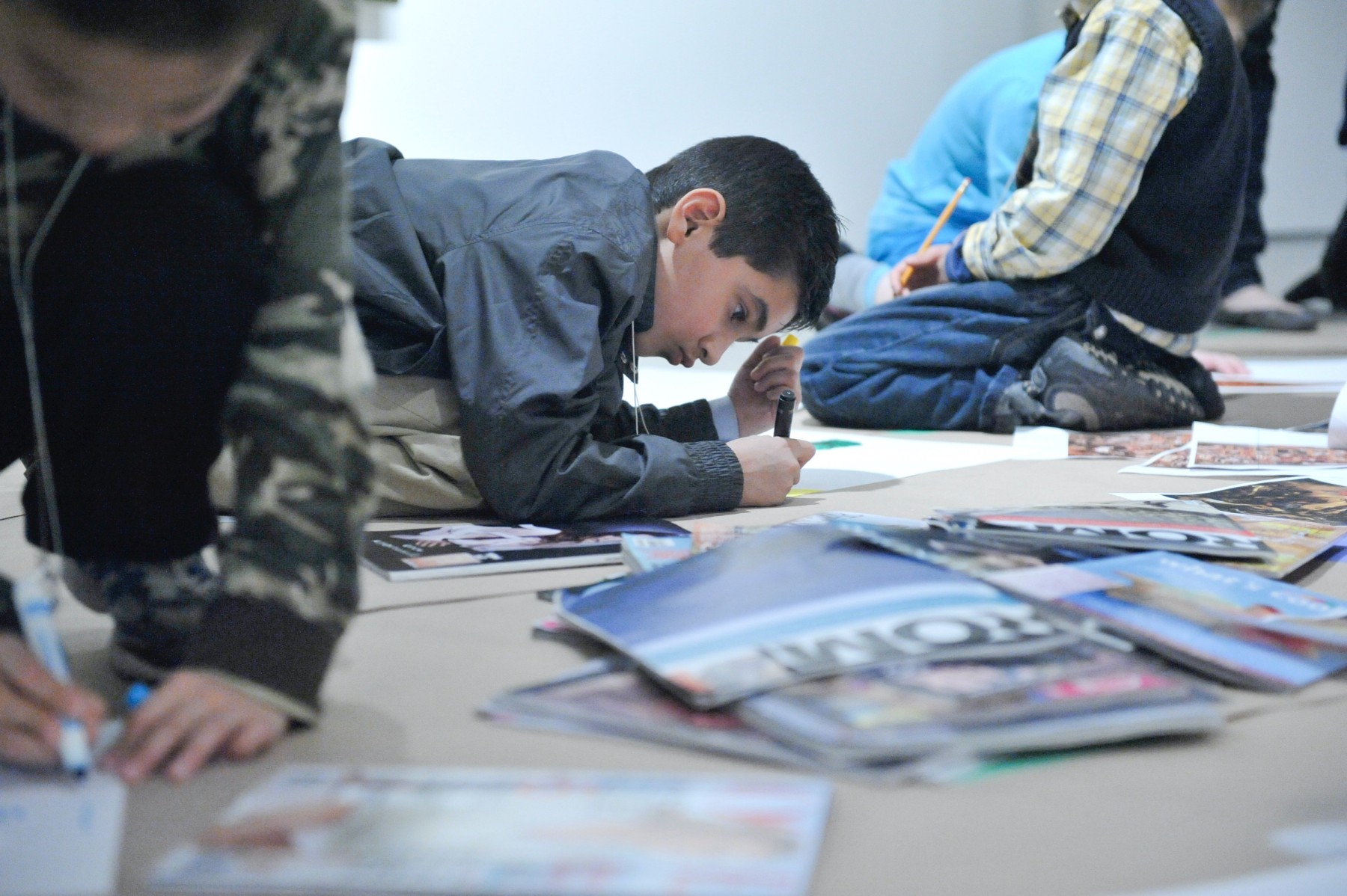 In DMG's session for the UTSC Take Your Kids to Work Day, the children were given a guided tour of the DMG exhibition Purloined Stories by curator Sandy Saad, followed by a hands-on artmaking activity in which they were encourage to appropriate images to create their own narratives.